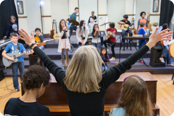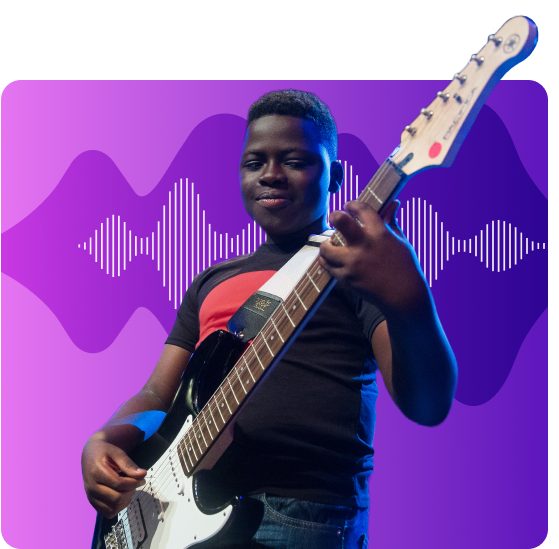 Empowering students is the core of all we do. With our diverse curriculum, students can learn songs by artists they love on instruments they’re playing. They can even record their own music.